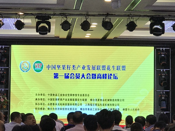 7月5日,由中國食品工業協會堅果炒貨委員會主辦,中國堅果籽類產業發展聯盟花生聯盟以及煙臺茂源食品機械制造有限公司共同承辦的“中國堅果籽類產業發展聯盟花生聯盟頭一屆會員大會暨高峰論壇”主題活動在山東省棲霞市煙臺寶華開元名都大酒店順利召開。